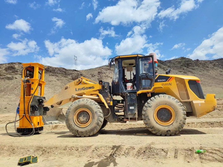 铲车打夯机代表了现代压实技术的重大进步,其核心在于液压能-机械能的高效转化系统:液压缸将夯锤提升至设定高度后释放,夯锤在重力与液压助推双重作用下高速下落,通过弹性缓冲装置将冲击能量传递至土壤深层。这种“动力压密法”使土颗粒在强动能下重新排列,形成均匀高密度的结构。